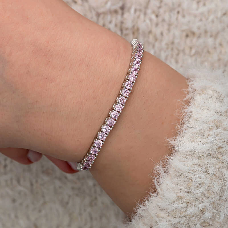 Gümüş Pembe Zirkon Taşlı Su Yolu Kadın Bileklik