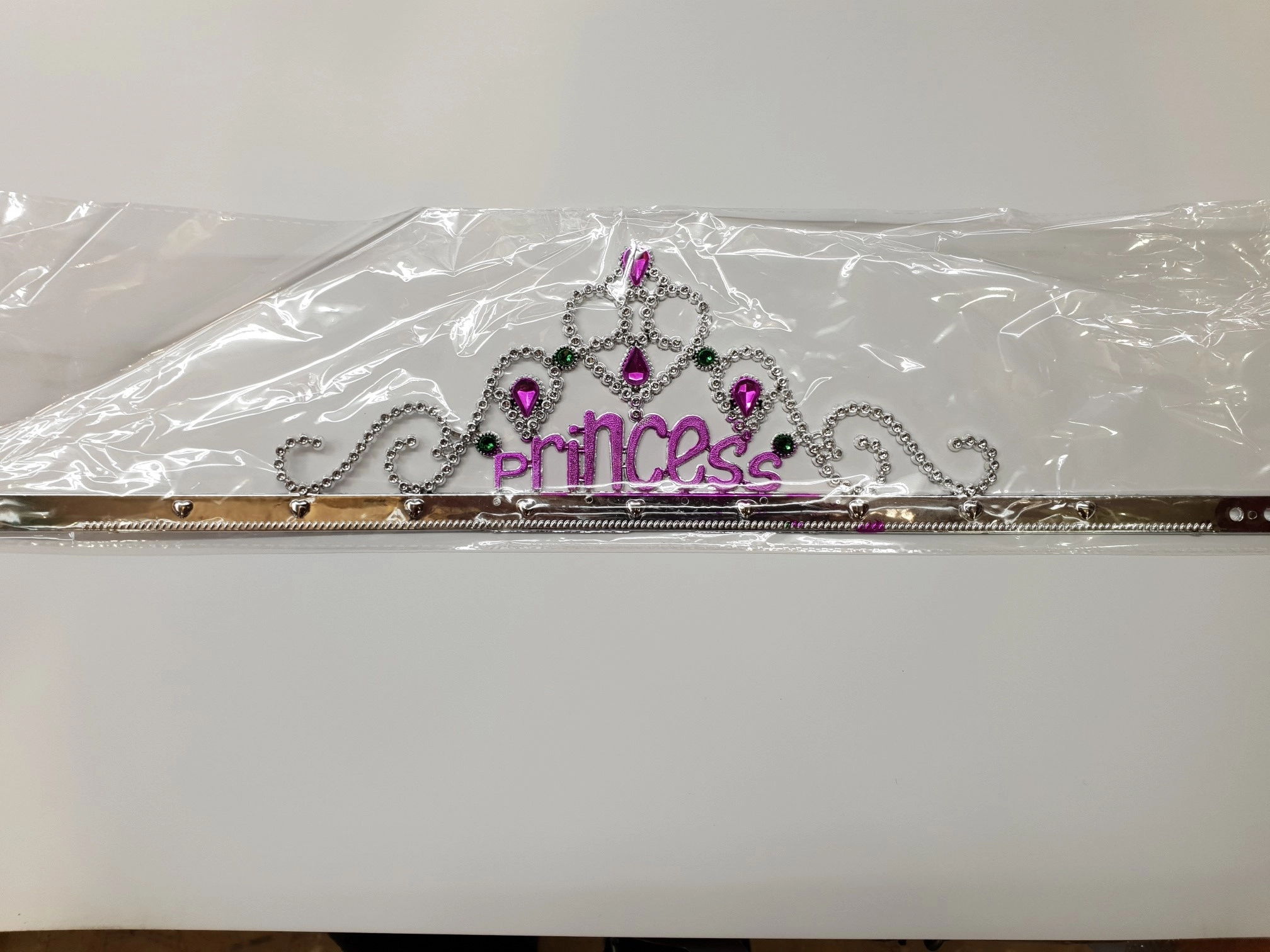 Gümüş Renk Prenses Yazılı Parti Tacı 60 cm