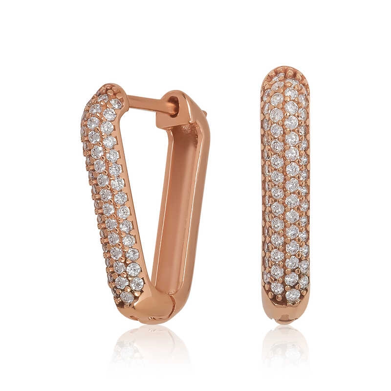 Gümüş Rose Beyaz Taşlı Üçgen Küpe