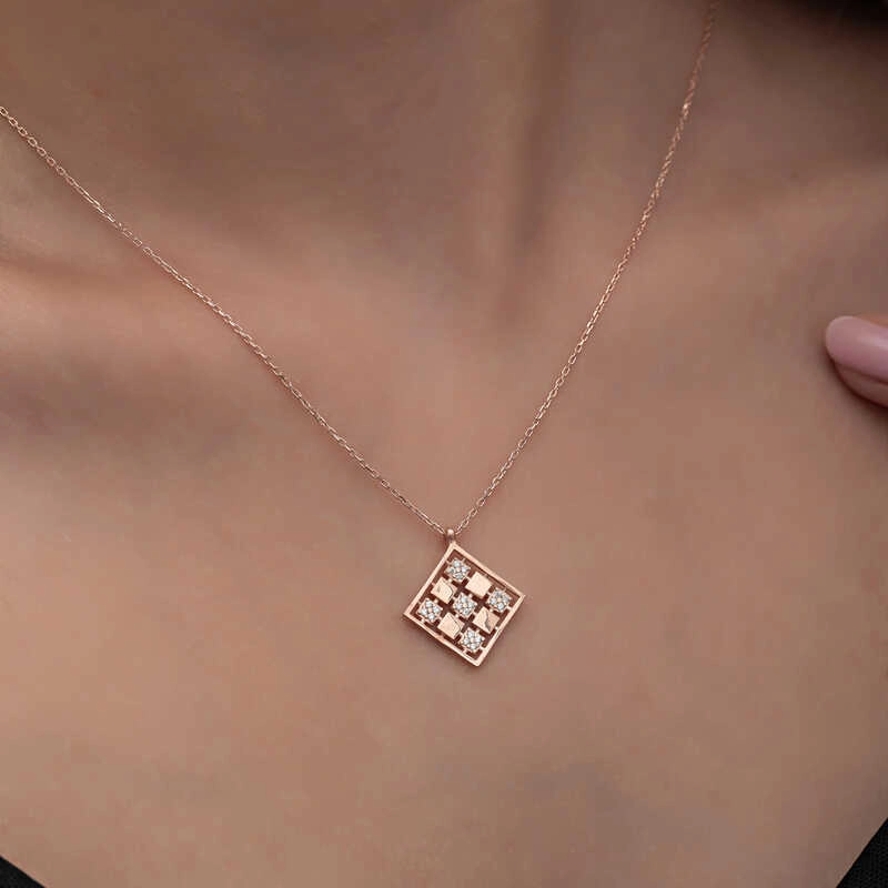 Gümüş Rose Dörtgen Zirkon Taşlı Kadın Kolye