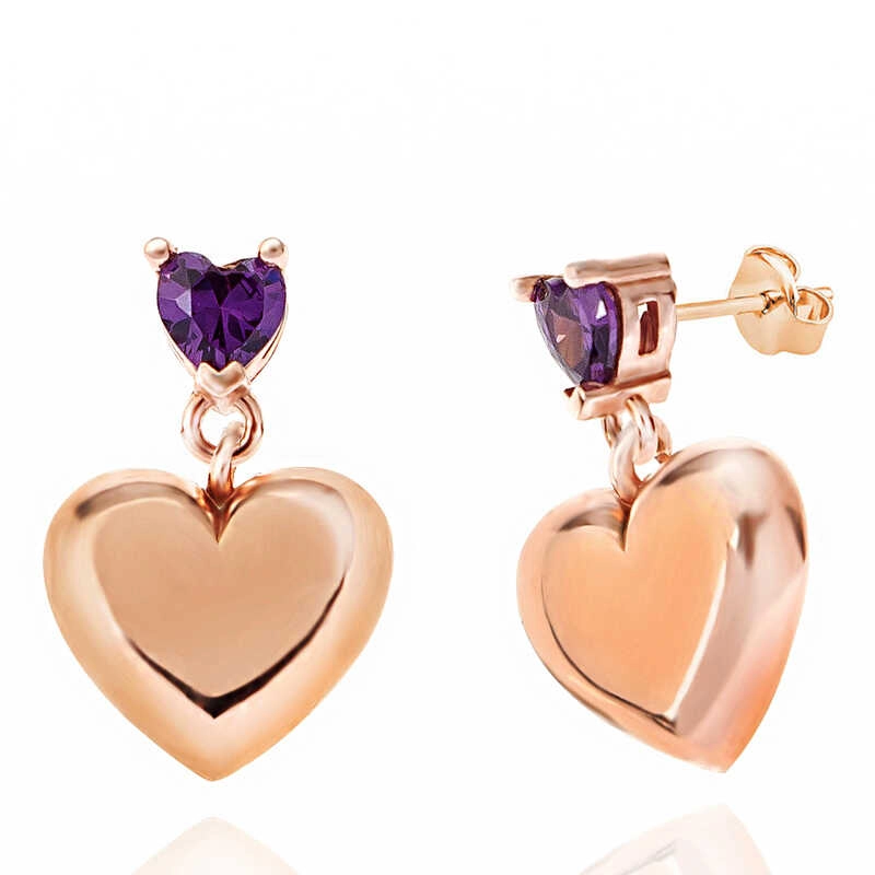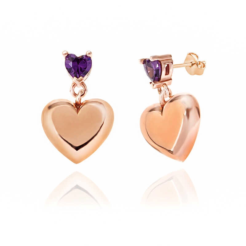 Gümüş Rose Mor Zirkon Taşlı Kalp Çivili Kadın Küpe