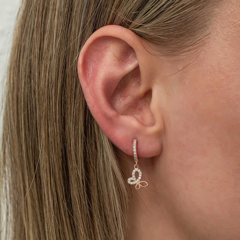 Özel günlerde verilecek hediyeler arasında olan çiçek, bu kez gümüş küpe ile anlam buldu. En kaliteli, en parlak, en ışıltılı taşlarla hazırlanmış gümüş bayan küpe, sevgisini bir kez daha anlatmak isteyenleri, Zihnin duruluğunu ve saflığını ifade eden küpe modeli; 925 ayar gümüşten imal edilmiştir. Gümüş üzerine rose kaplama yapılmıştır.Rose kaplama yapılan gümüş küpeler parlaklığını uzun süre muhafaza eder, oksitlenmesi gecikir. Tüm bayan gümüş küpelerde olduğu gibi gümüş kelebek küpe modeli de el emeği ile üretilmiştir. Üzerinde bulunan taşlar zirkondur. Gümüş ve değerli taşlar nedeniyle belirtilen ortalama ürün ağırlığında ± %10 sapma olabilmektedir.