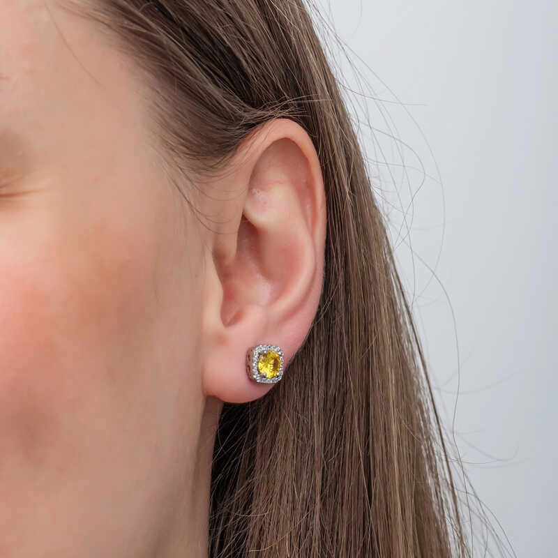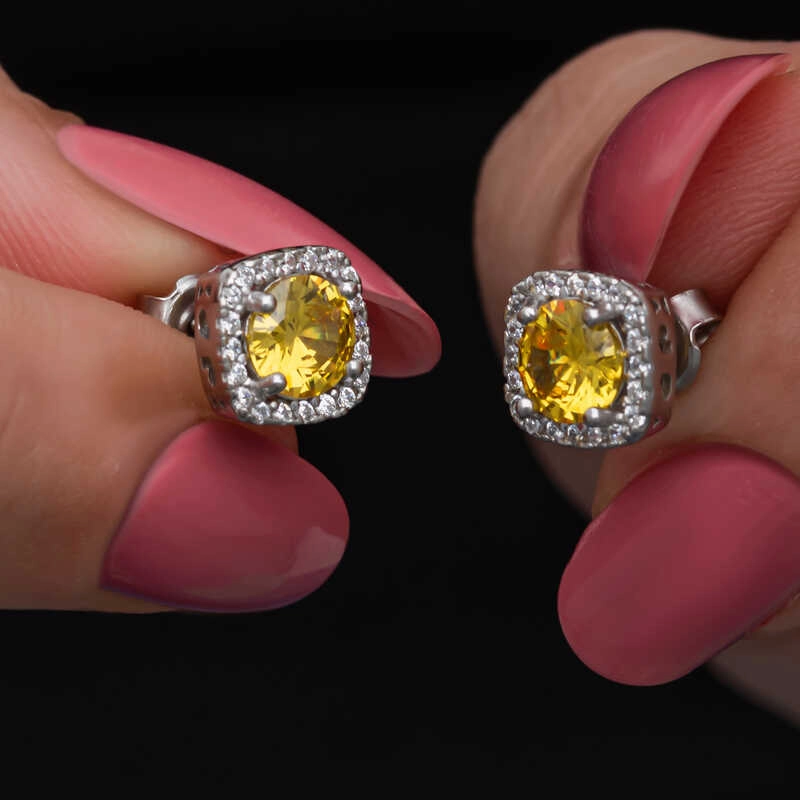 Gümüş Sarı Baget Taşlı Çivili Kadın Küpe