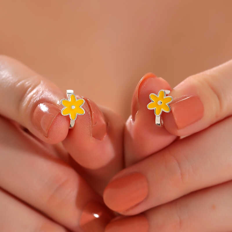 Gümüş Sarı Çiçek Çocuk Küpesi