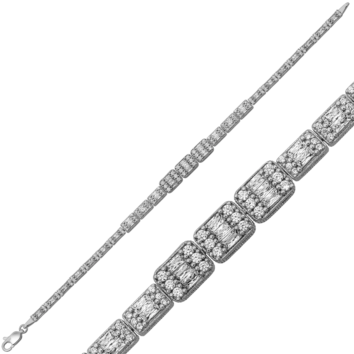 Gümüş Sıralı Baget Taşlı Su Yolu Kadın Bileklik