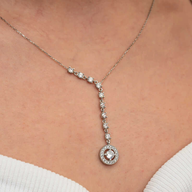 Gümüş Sıralı Zirkon Taşlı Çember Kadın Kolye