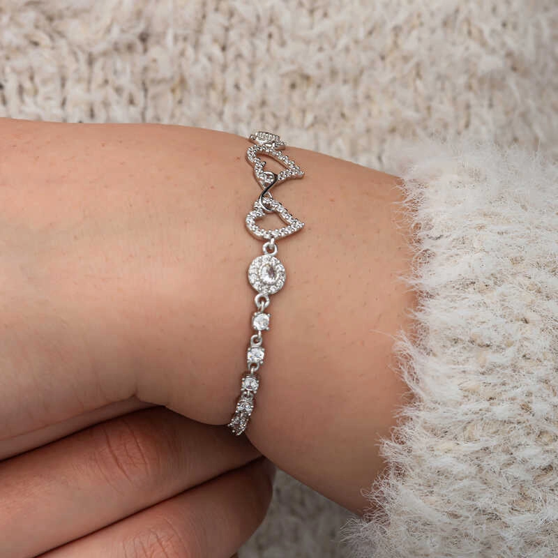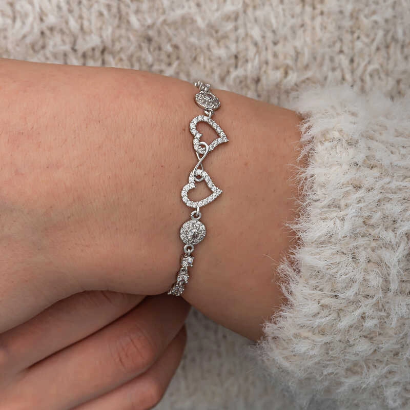 Gümüş Sonsuzluk İki Kalp Kadın Bileklik