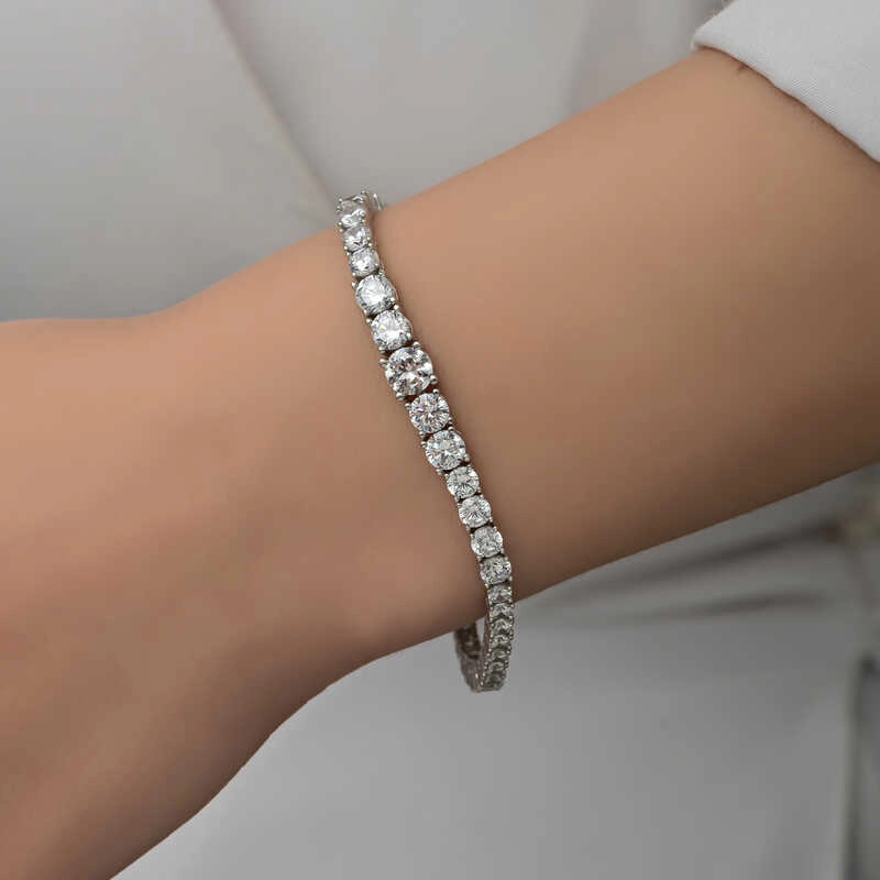 Gümüş Süzme Beyaz Taşlı Su Yolu Kadın Bileklik