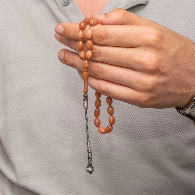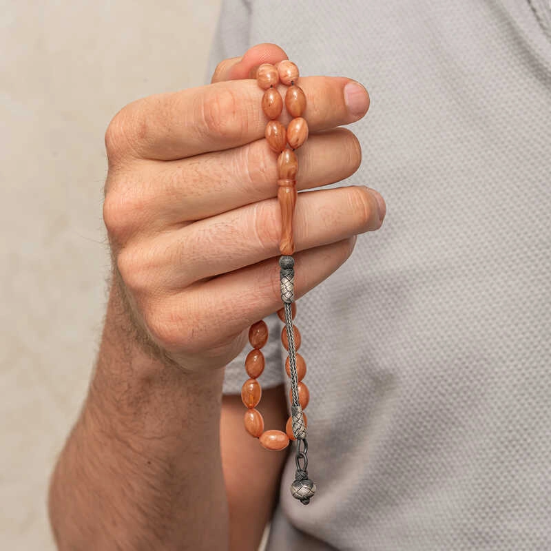 Gümüş Top Kazaz Püsküllü Sıkma Kehribar Tesbih