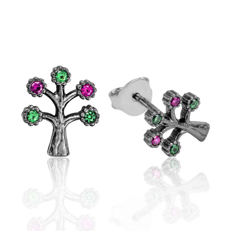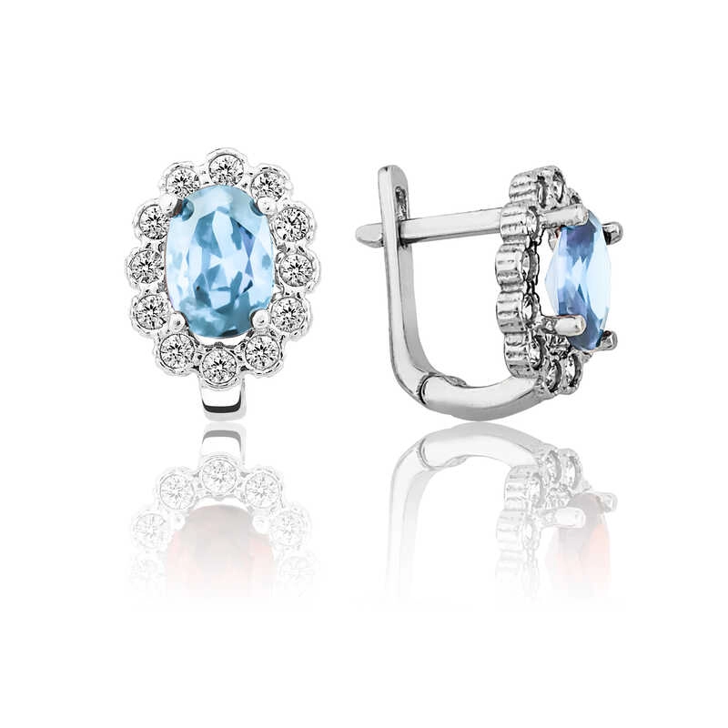 Gümüş Turkuaz Çiçek Desenli J Kadın Küpe