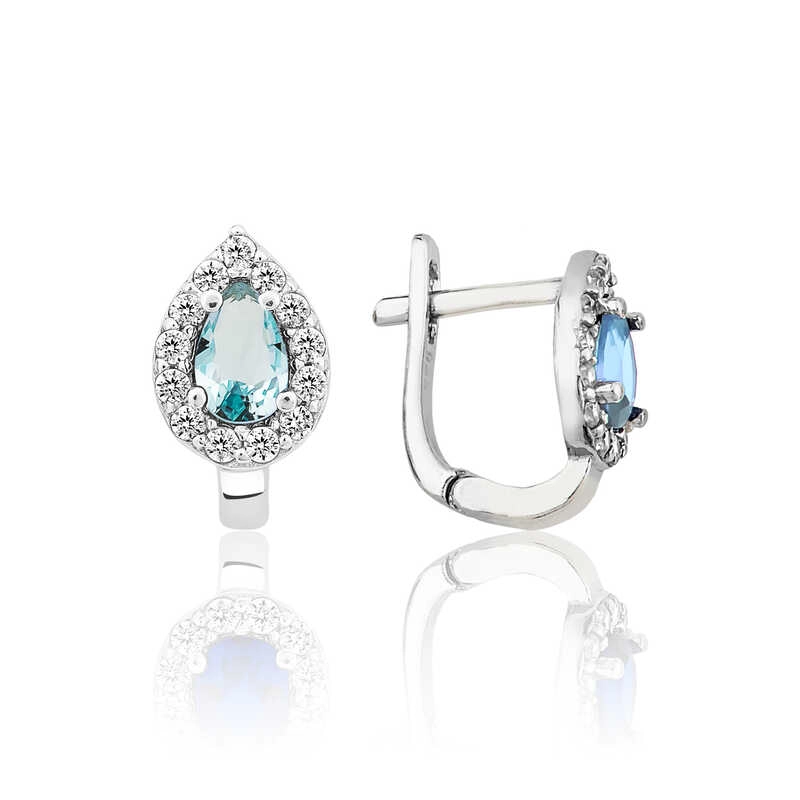 Gümüş Turkuaz Taşlı Damla J Kadın Küpe