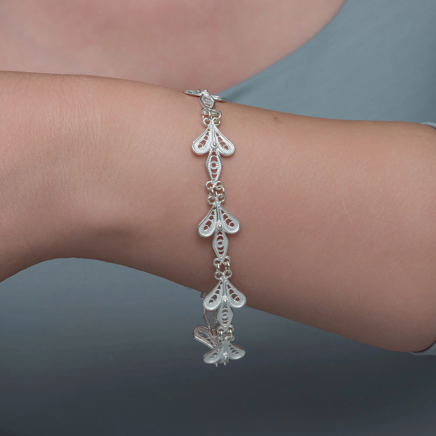 Gümüş Üç Yaprak Telkari Kadın Bileklik