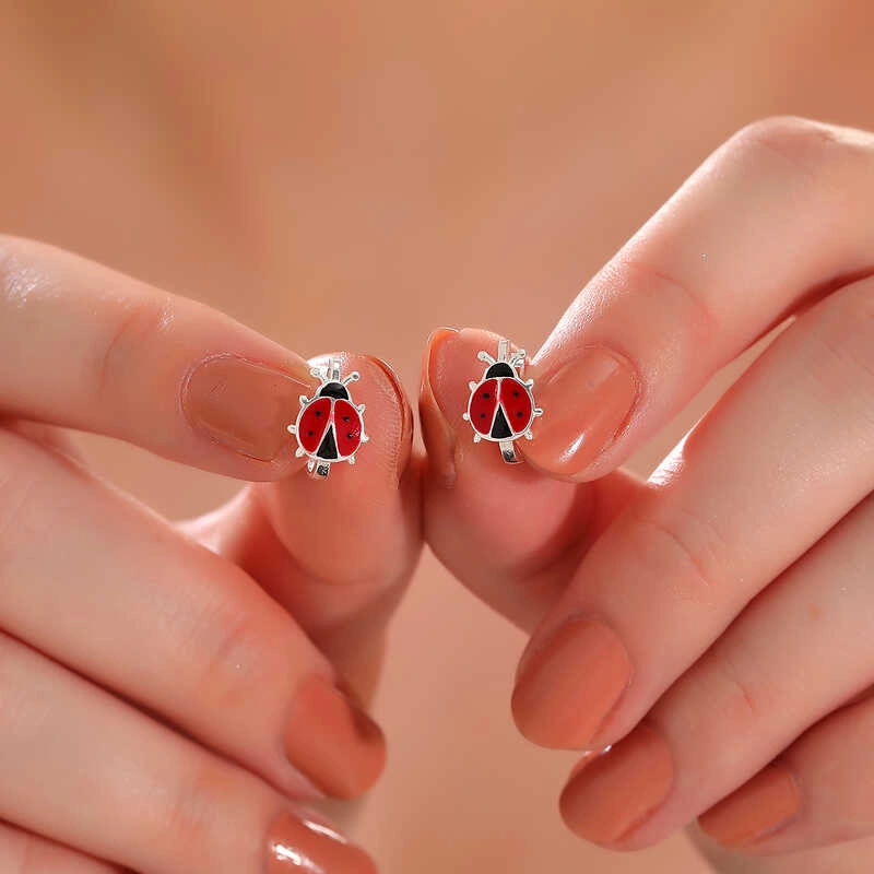 Gümüş Uğur Böceği Çocuk Küpesi