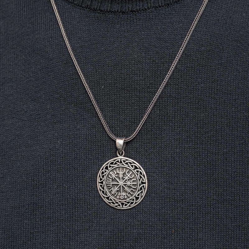 Viking Pusulası (Vegvisir):Norse mitolojisinde yer alan bir semboldür.Vikinglerin yolunu bulmalarına yardımcı olduğuna inanılır.Eğer biri bu sembolü taşırsa,kaybolmaz ve yolunu bulur denir.Bu şık kolye; doğum günü hediyesi,sevgililer günü hediyesi veya hediye olarak özel günlerde tercih edebilirsiniz.Gümüş üzerine oksit kaplama yapılmıştır.Oksit kaplama yapılan gümüş kolyeler parlaklığını uzun süre muhafaza eder.Tüm kolyelerde olduğu gibi bu gümüş viking pusula kolye de tamamı el emeği ile üretilmiştir.Gümüş ve değerli taşlar nedeniyle belirtilen ortalama ürün ağırlığında ± %10 sapma olabilmektedir.