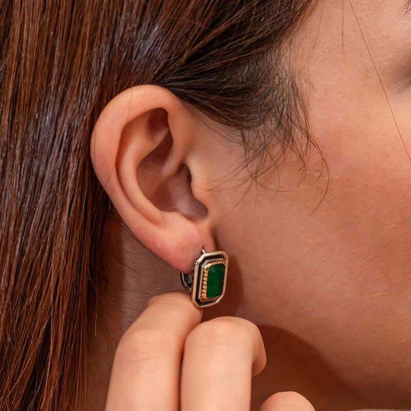 Gümüş Yeşil Taşlı Otantik Kadın Küpe