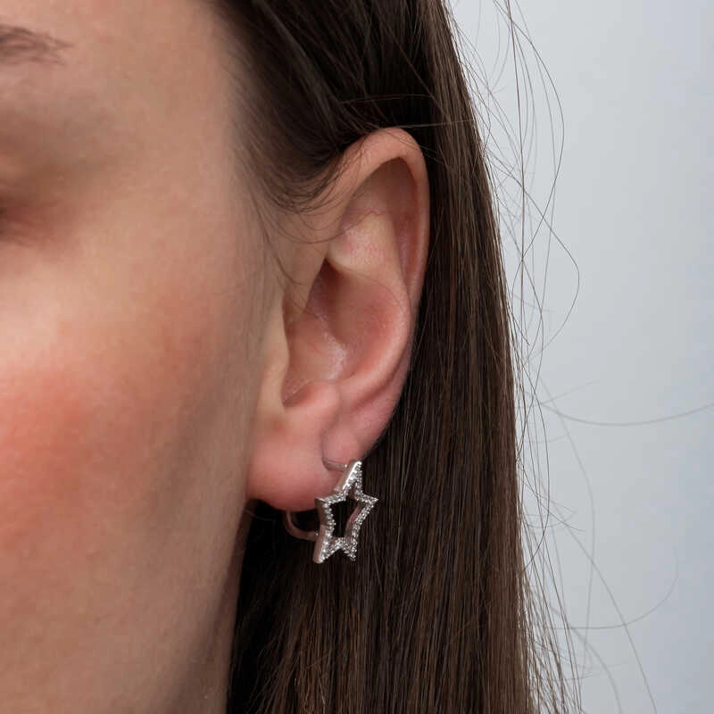 Dış görünümü konusunda hassas olan ve stiliyle ön plana çıkmak isteyen kadınların tercihi olan yıldız kadın küpe, gençlerin ve kendisini genç hisseden kadınların stiline uyum sağlayabilecek özgün modeller arasında yer almaktadır. Zamansız tasarımlar arasında gösterilen küpeler modaya uyumlu bir şekilde stilinizi canlandırabilmenizi sağlar. Doğum günü hediyesi, sevgililer günü hediyesi veya özel günlerde tercih edilebilecek mükemmel bir seçenektir. Gümüş yıldız kadın küpe; 925 ayar gümüşten imal edilmiştir. Gümüş üzerine rodyum kaplama yapılmıştır. Rodyum kaplama yapılan gümüş küpe modelleri parlaklığını uzun süre muhafaza eder ve oksitlenmesi gecikir. Tüm kadın küpelerde olduğu gibi bu küpe modeli de el emeği ile üretilmiştir. Gümüş ve değerli taşlar nedeniyle belirtilen ortalama ürün ağırlığında ± %10 sapma olabilmektedir.