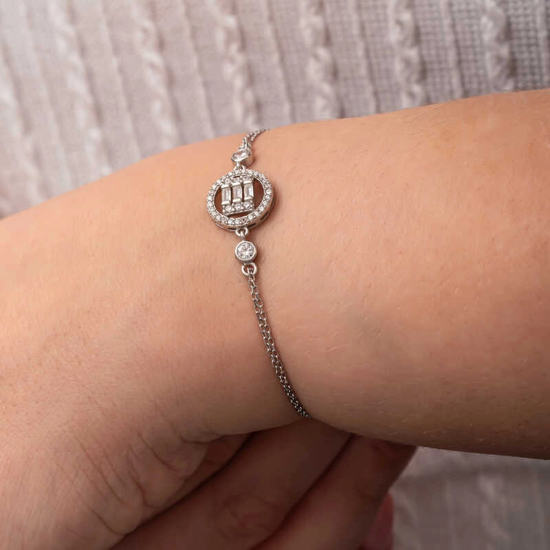Gümüş Yuvarlak Baget Taşlı Kadın Bileklik