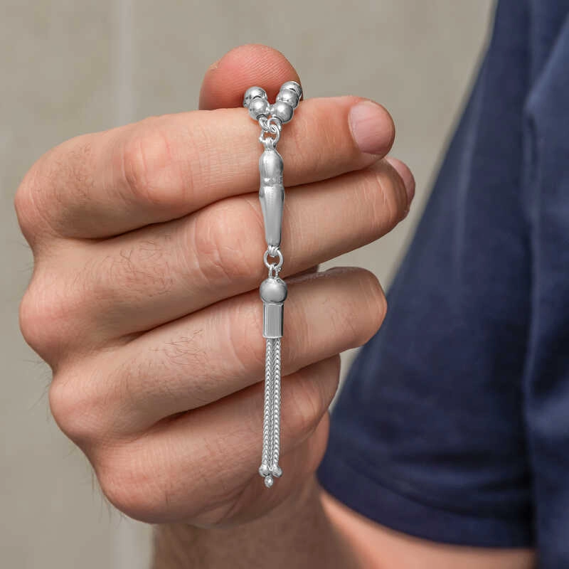 Bu şık ve zarif tesbih,yüksek kaliteli 925 ayar gümüşten üretilmiştir.Yuvarlak formdaki küçük boy gümüş taneleriyle hem günlük kullanım hem de özel günlerde tercih edilebilecek zarif bir aksesuardır.Modern tasarımı ve sade çizgileriyle dikkat çeken bu erkek tesbihi,elde rahatça tutulabilecek boyutta tasarlanmıştır.Gümüş tesbihi severek kullanabilir;doğum günü,sevgililer günü veya babalar gününde ya da özel günlerde hediye olarak tercih edebilirsiniz.Ürünlerimizin tamamı el emeği ile üretilmiştir.Gümüş ve değerli taşlar nedeniyle belirtilen ortalama ürün ağırlığında ± %10 sapma olabilmektedir.