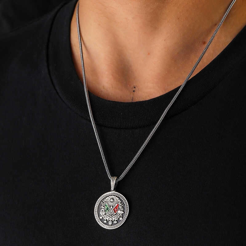 Gümüş Zincirli Küçük Kur'anı-ı KerimKur'an-ı Kerim, İslam dininin ana kitabıdır. Müslümanlara göre, Kur'an ayetleri Allah tarafından Cebrail adındaki melek aracılığıyla İslam peygamberi Muhammed'e vahiyler halinde indirilen bir kutsal kitaptır.İslam inancında, Kur’ân, Muhammed'in en önemli ve en büyük mucizesi ve onun gerçek bir peygamber olduğunun kanıtı olarak görülür. Kur'an-ı Kerim kapağı bordo kadife ve üzeri 925 ayar gümüş kaplamadır. Sayfaları altın yaldızlıdır. Zincirli Kur'an-ı Kerim araba aynasına ya da farklı yerlere asılarak da kullanılabilir. Sevdiklerinize manevi değeri olan bir hediye vermek istiyorsanız tercih edebileceğiniz hoş bir seçenektir.Ürün Eni: 5.00 cmÜrün Boyu: 6.00 cmÜrün Ağırığı: 50.00 grÜrünlerimizin tamamı el emeği ile üretilmiştir ve değerli taşlar nedeniyle ürün ağırlığında ± %10 sapma olabilmektedir.