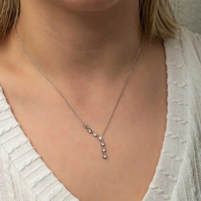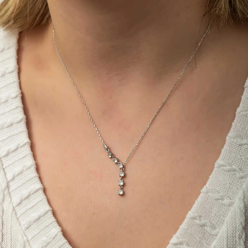 Gümüş Zirkon Sıra Taşlı Kadın Kolye