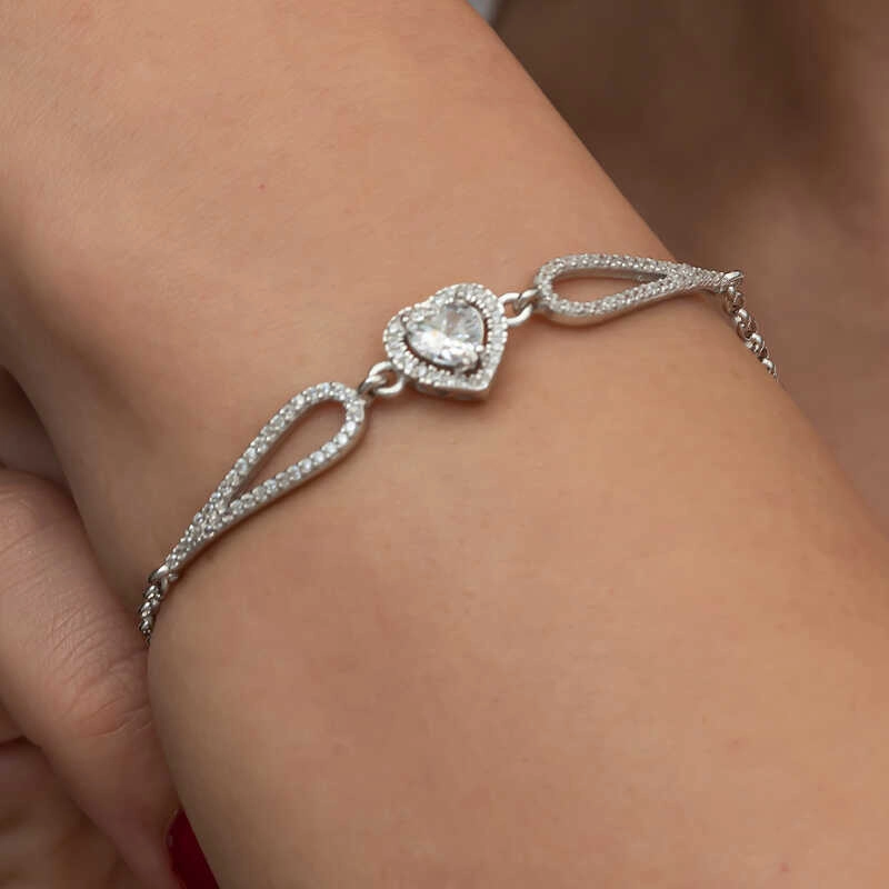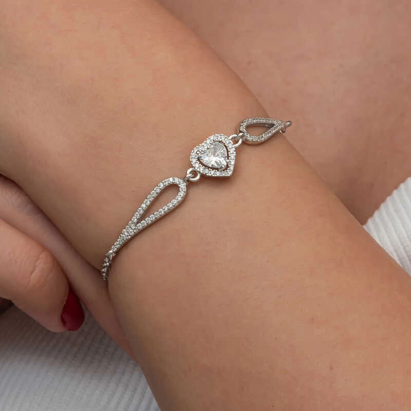 Gümüş Zirkon Taşlı Kalp Bileklik