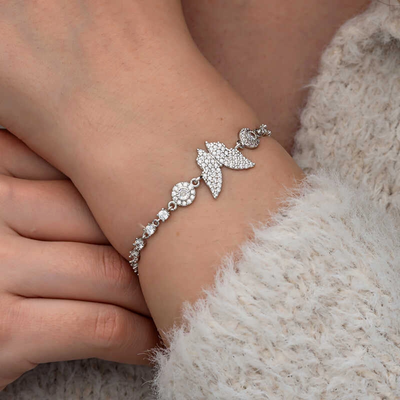 Gümüş Zirkon Taşlı Kelebek Kadın Bileklik