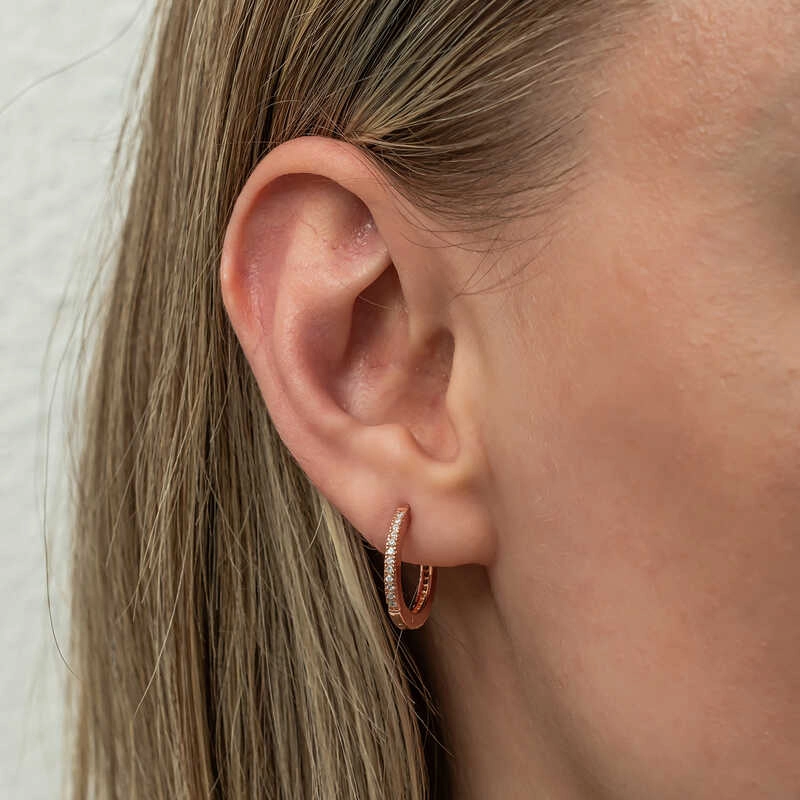 Gümüş Zirkon Taşlı Rose Oval Küpe
