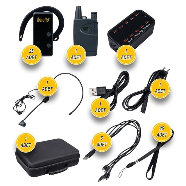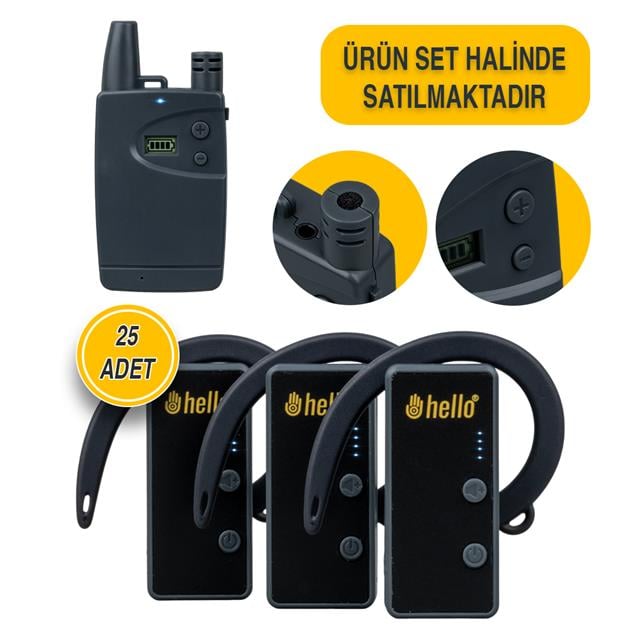 Hello Hl-27915 25'li Kulaklık Tipi Tur Rehber Sistemi Seti (100 Metre Menzil)