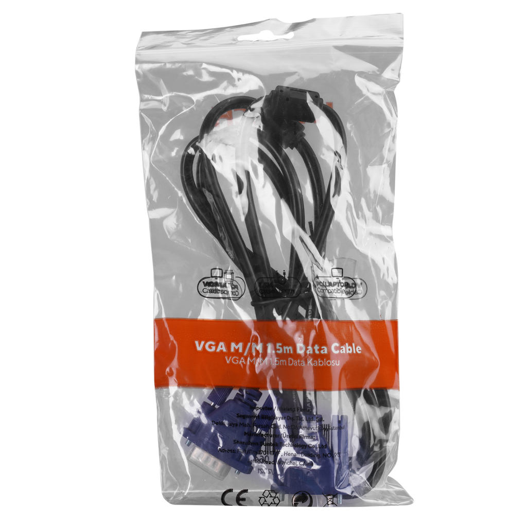 HYTECH HY-VGA105, 15Pin, Iki Ucu Erkek, 1.5mt, VGA Kablosu