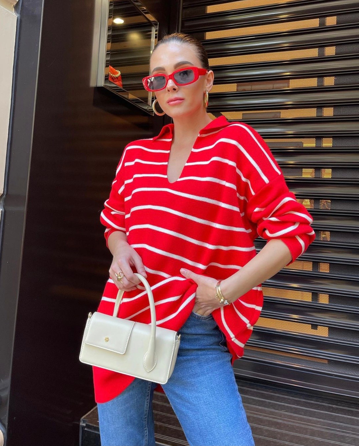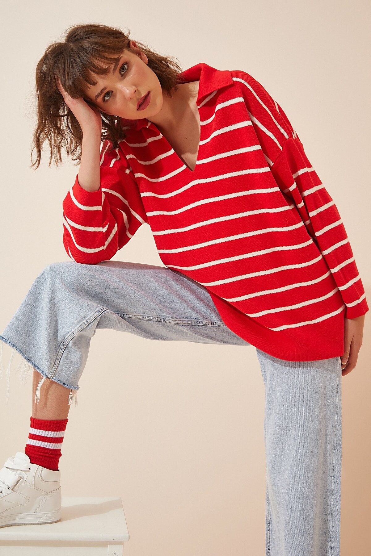 Kadın Çizgili Oversize Kazak