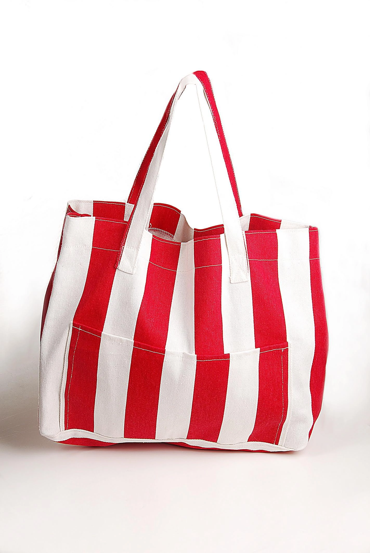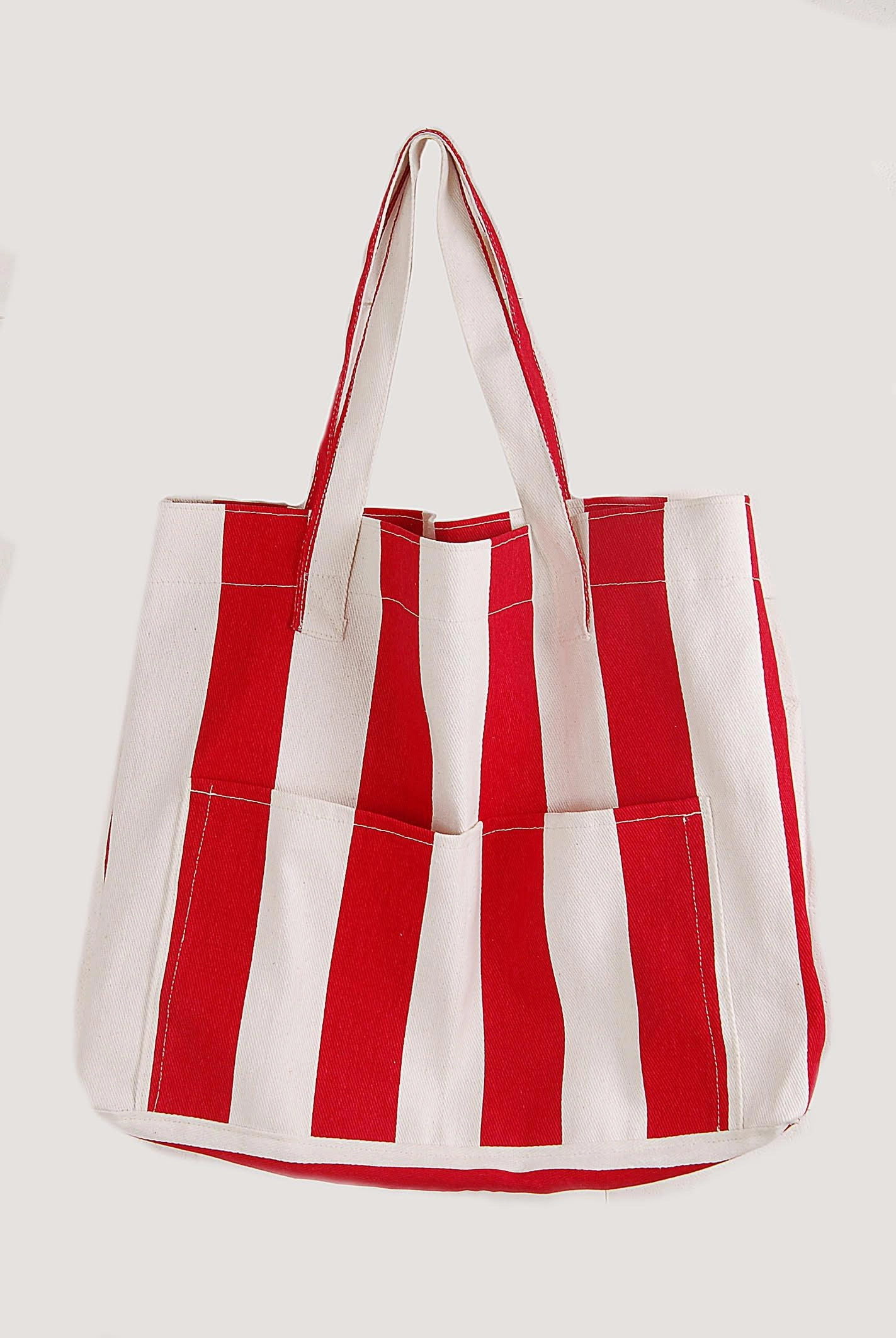 Kadın Kanvas 2 Cepli Günlük Renkli Plaj Omuz Çantası Kırmızı