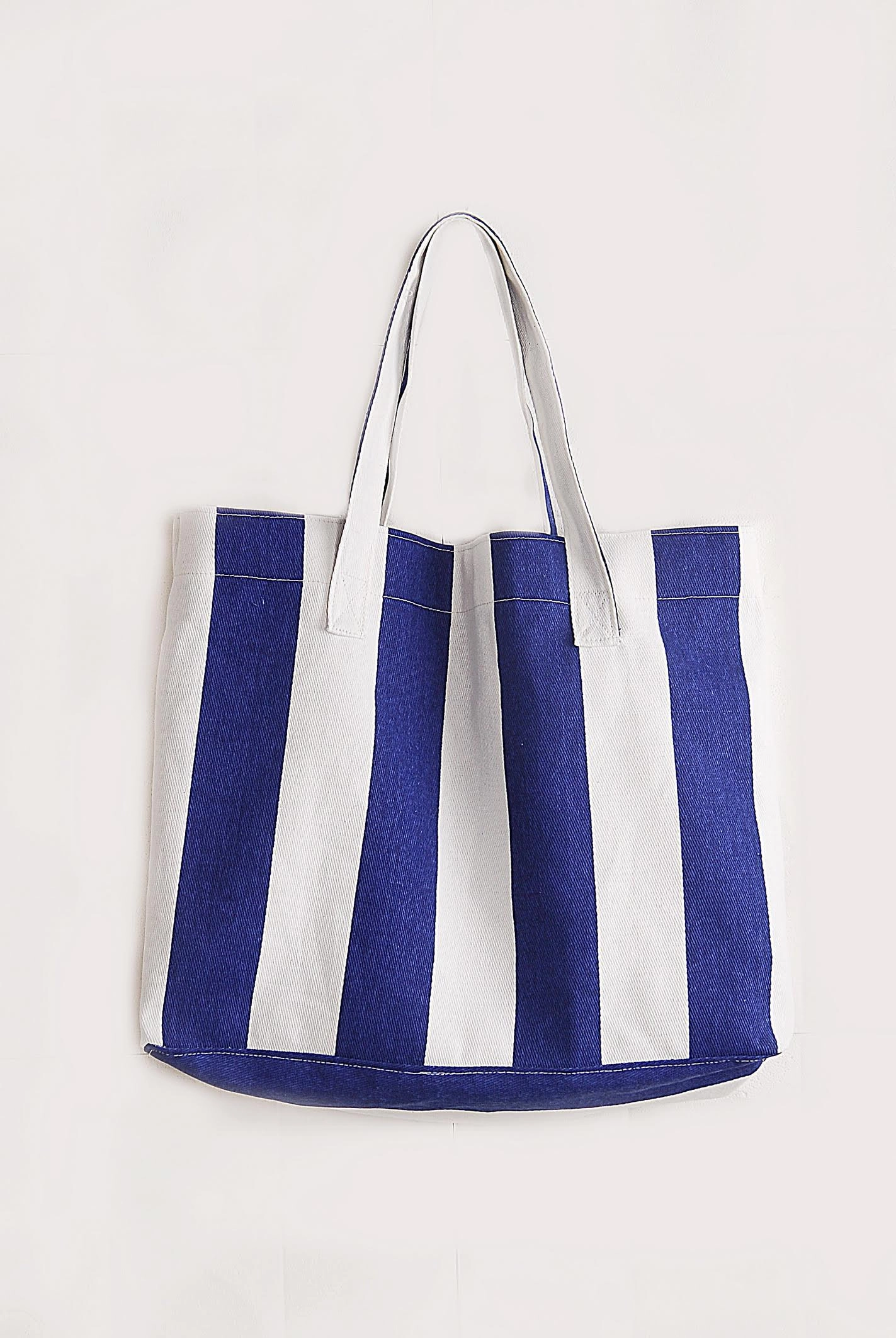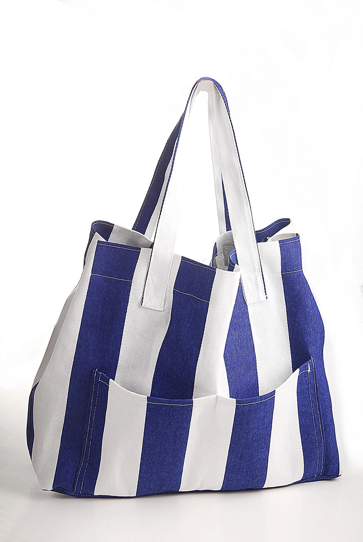 Kadın Kanvas 2 Cepli Günlük Renkli Plaj Omuz Çantası Mavi