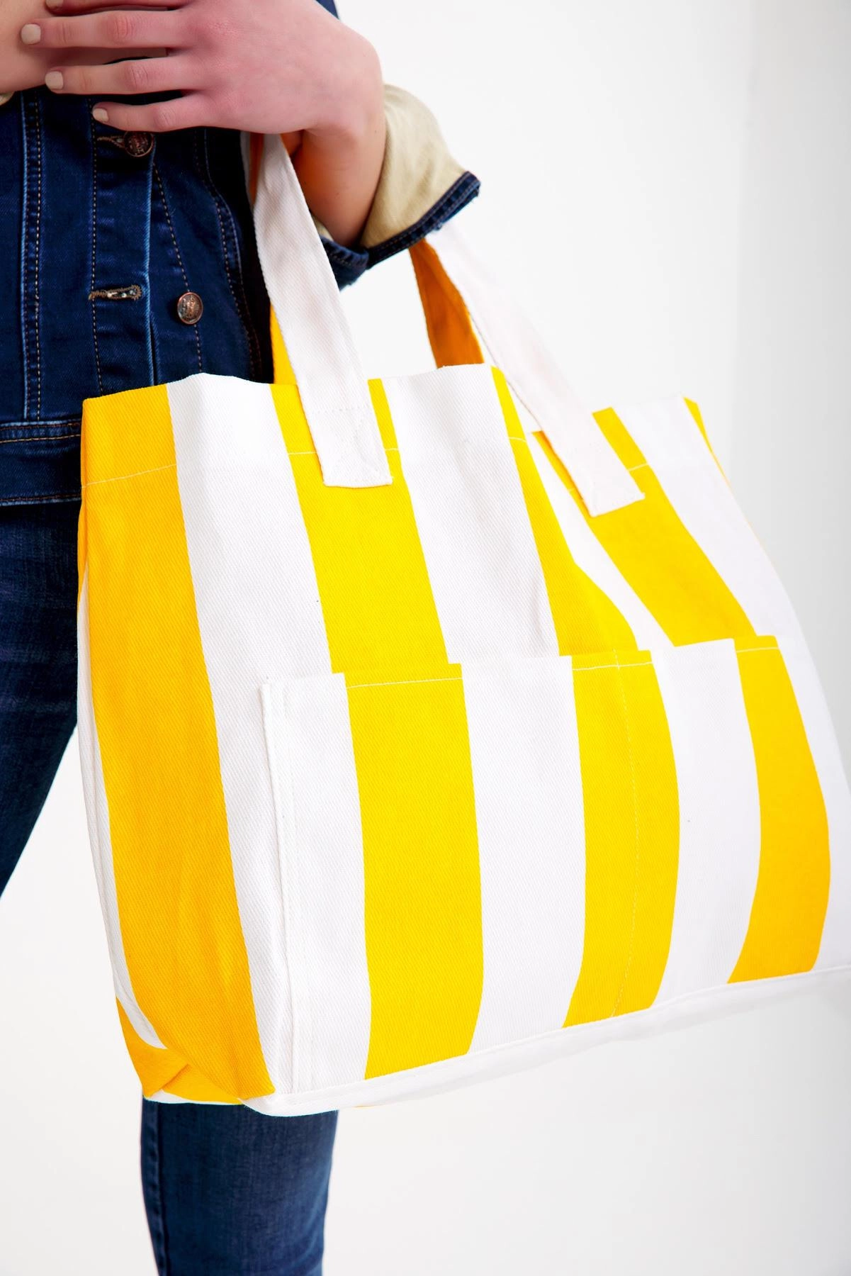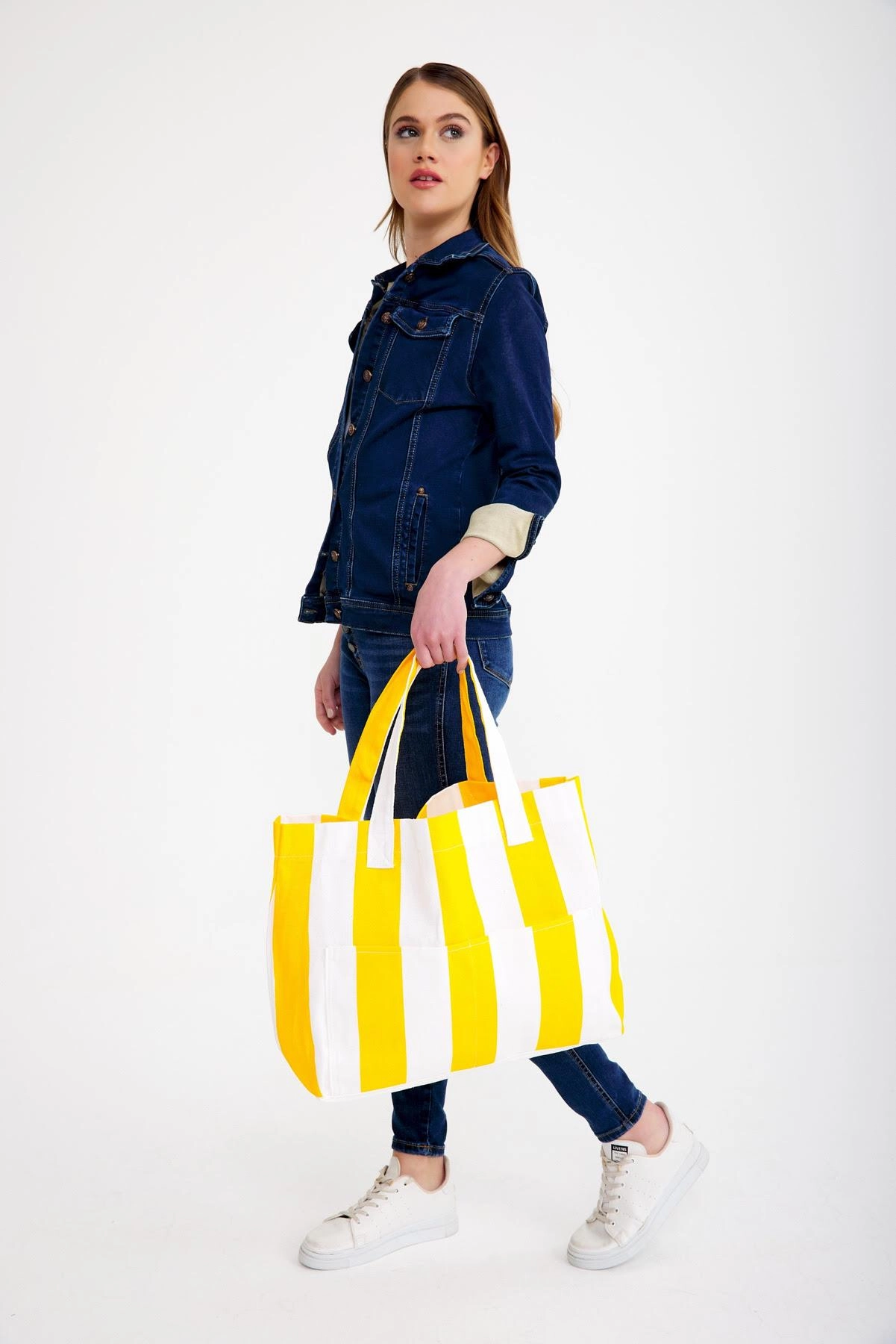 Kadın Kanvas 2 Cepli Günlük Renkli Plaj Omuz Çantası Sarı