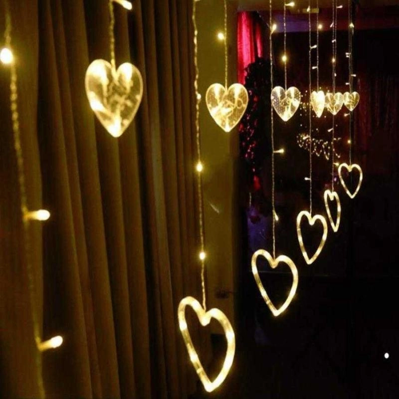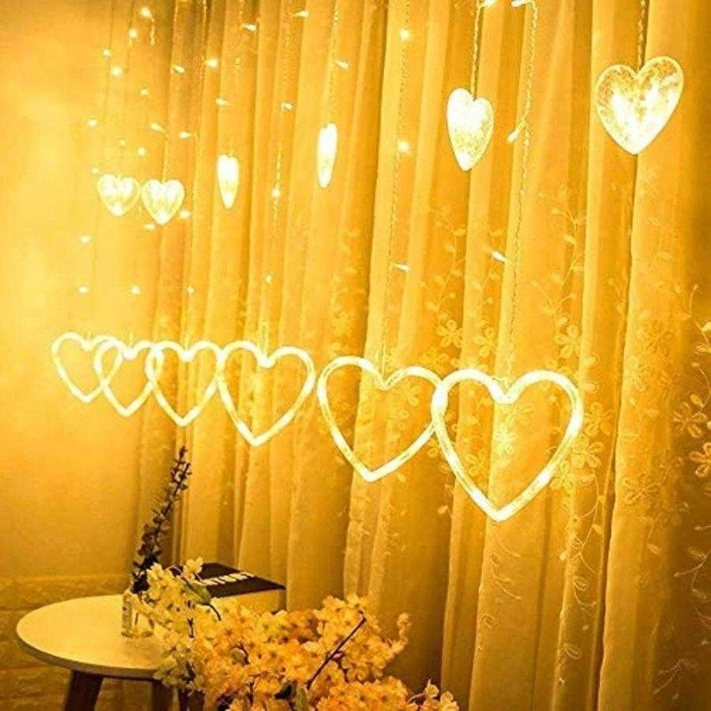 Kalp Dekorlu Animasyonlu Perde LED Işık 3 Metre