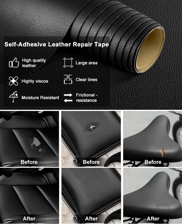 Kendinden Yapışkanlı Deri Döşeme Tamir Kiti Siyah 100x50