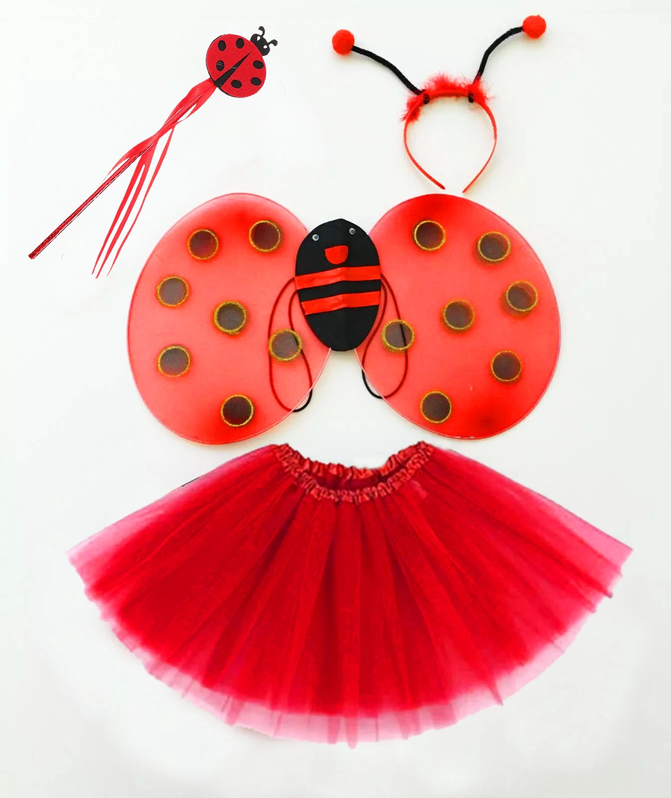 Kırmızı Uğur Böceği Ateş Böceği Kostüm Seti - (Tütü, Kanat, Taç, Asa)
