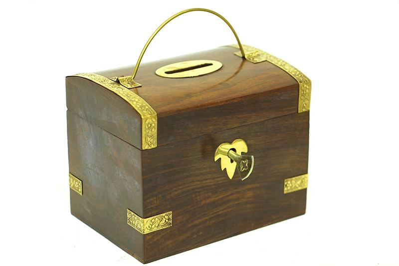 Kumbara Kilitli Ahşap Kutu Kumbara Hediyelik