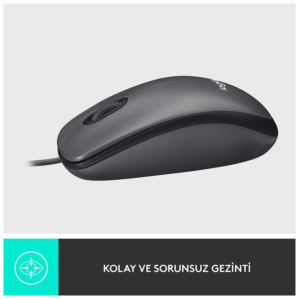 LOGITECH 910-006652, M100 Siyah, USB Kablolu, 1000dpi, Optik, 3 Tuslu, Mouse