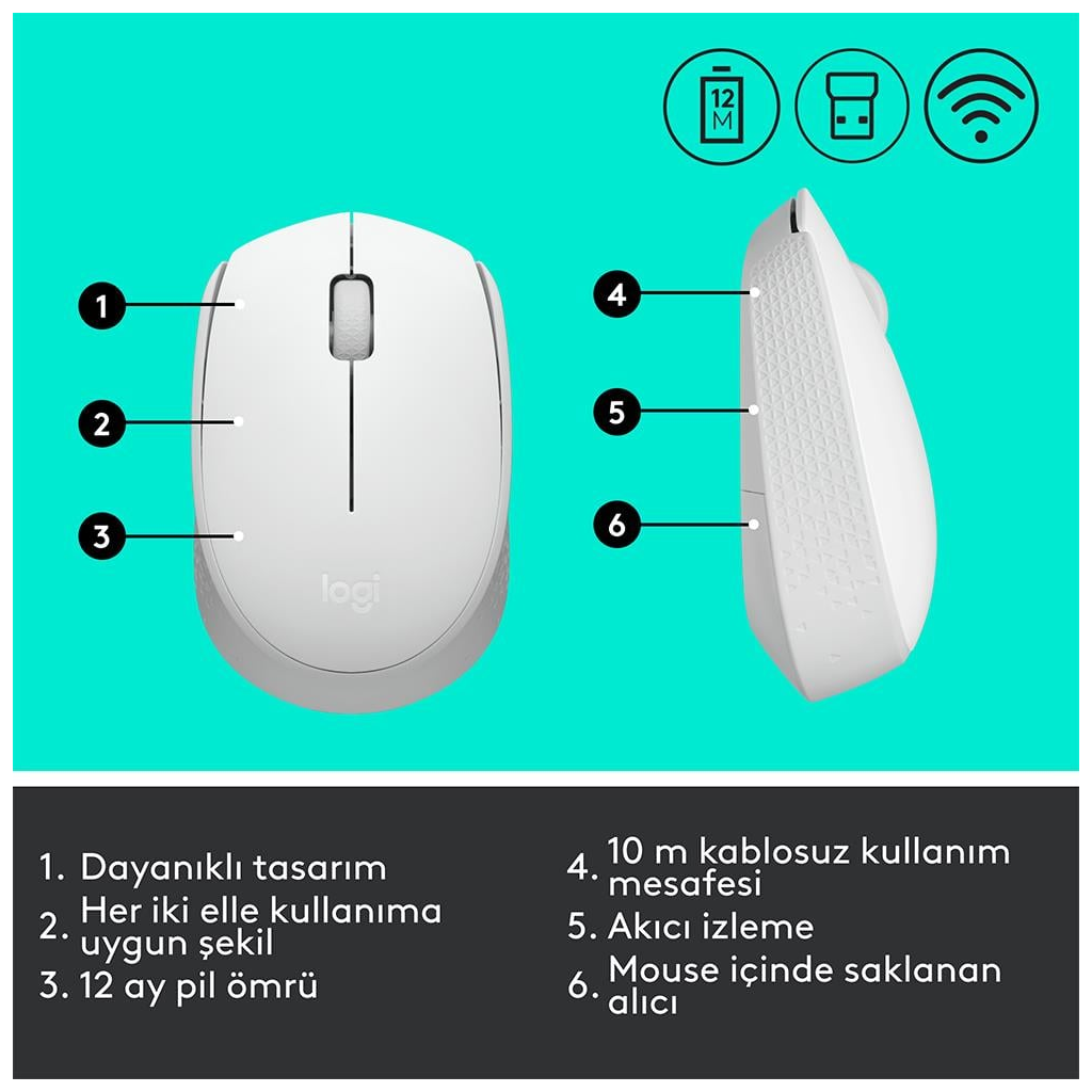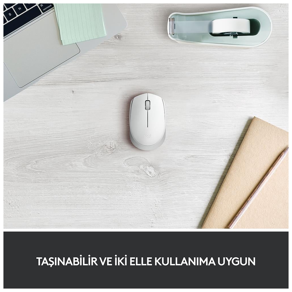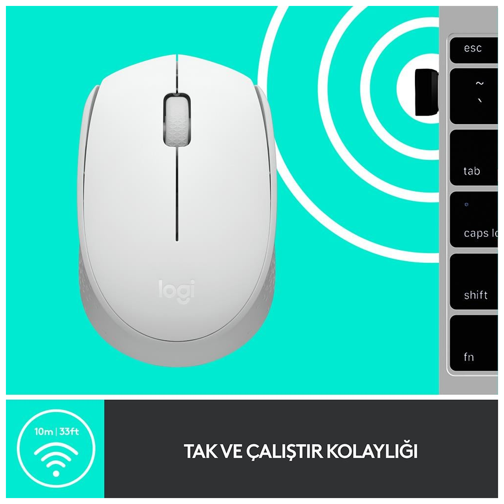 LOGITECH 910-006867, M171 White, USB Nano 2,4G Kablosuz, 1000dpi, Optik, 3 Tuslu, 12ay Pil Omru, Mouse