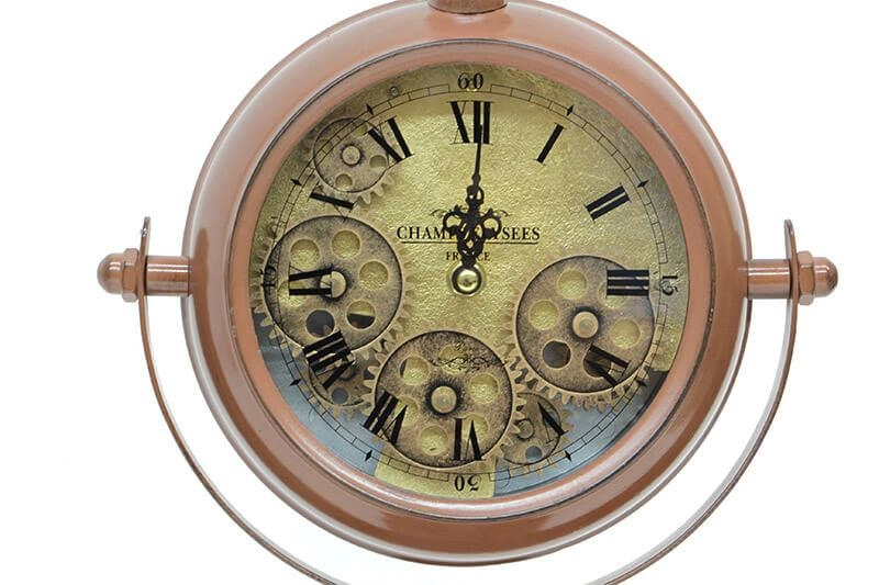 Masaüstü Mat Kahve Çarklı Saat Roma Rakamlı Köstek Modeli