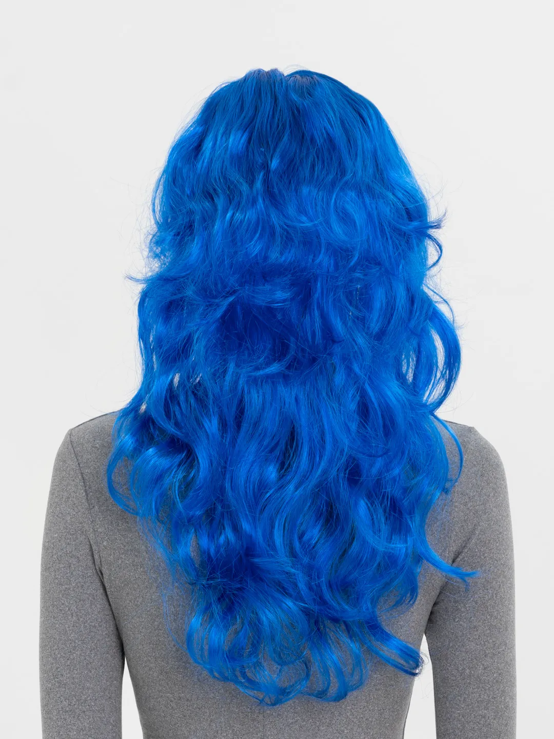 Mavi Renk Uzun Dalgalı Parti Peruğu