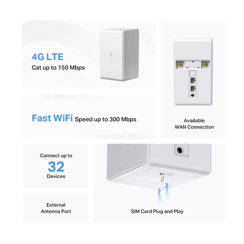 MERCUSYS MB110-4G, N300, 2Port, 300Mbps, Sim Kart Yuvali, 4G-LTE, Router