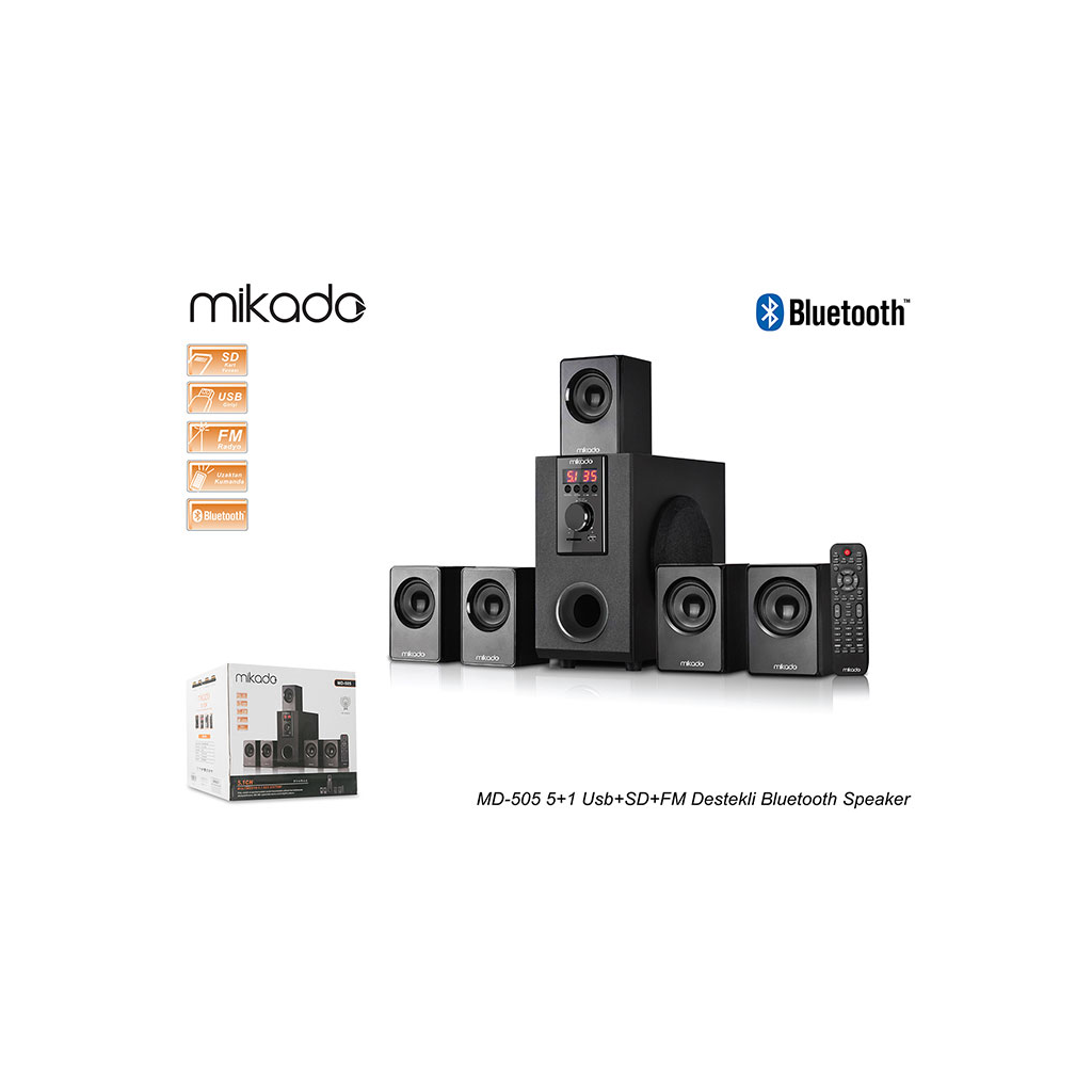 Mikado MD-505 5+1 Usb+SD+FM Destekli Bluetooth Speaker ; Özenle dizayn edilmis 5 adet satellite hoparlör sayesinde gücünüze güç katin.