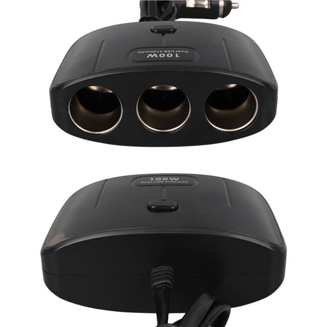Olesson 1635 12-24v Çift Usb Girişli 100w 70 Cm Kablolu 3'lü Araç Çakmak Çoklayıcı 100x66x40mm