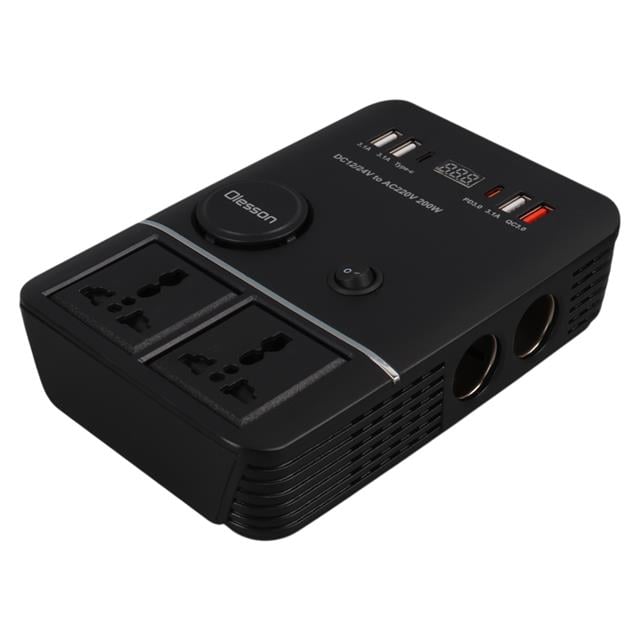 Olesson 1661 Dc 12-24v 200w Oto Araç Power İnverter 2x Çakmak Girişi - 2x Type-c - 4x Usb - 2x 220v Üniversal Priz