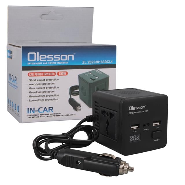 Olesson 1663 Dc 12-24v 150w Oto Araç Power İnverter Type-c - Çift Usb - 220v Üniversal Priz Girişli