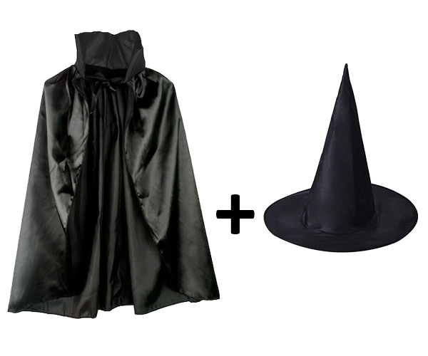 Siyah Pelerin ve Siyah Cadı Şapkası Seti
