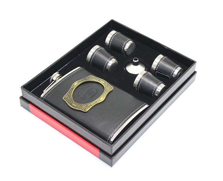 Paslanmaz Çelik 4 Shot Bardaklı Derili Matara Seti Model 3