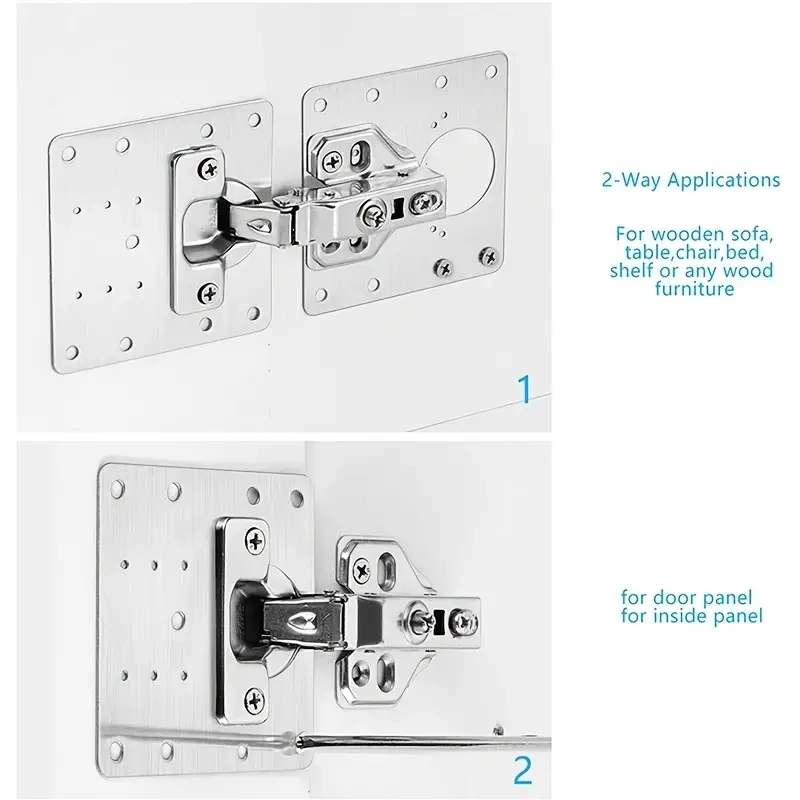 Menteşe tamir plakası, orijinal hasarlı alanı kaplamak için yeterince büyüktür. Paslanmaz çelik menteşe tamir plakası, sağlam yapışma ve sağlamlık için birçok deliğe sahiptir. Kapı panelleri ve yan kapılar kullanılabilir, tüm dolap kapıları için uygundur. Her Menteşe Tamir Plakası parçası 6 vida ile birlikte gelir. Özellikler: Malzeme: Paslanmaz Çelik Boyut: 9cm * 9cm Kalınlık: 0.8mm Paket içeriği: 1 x Tamir Plakası ve 6 x Vidalar