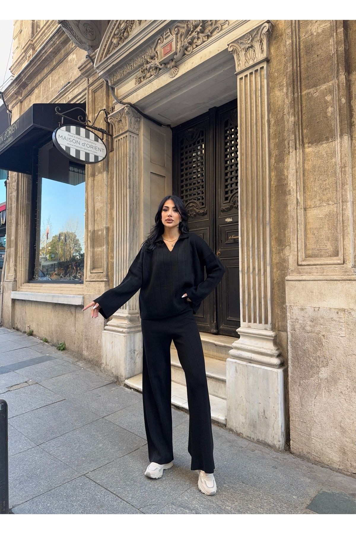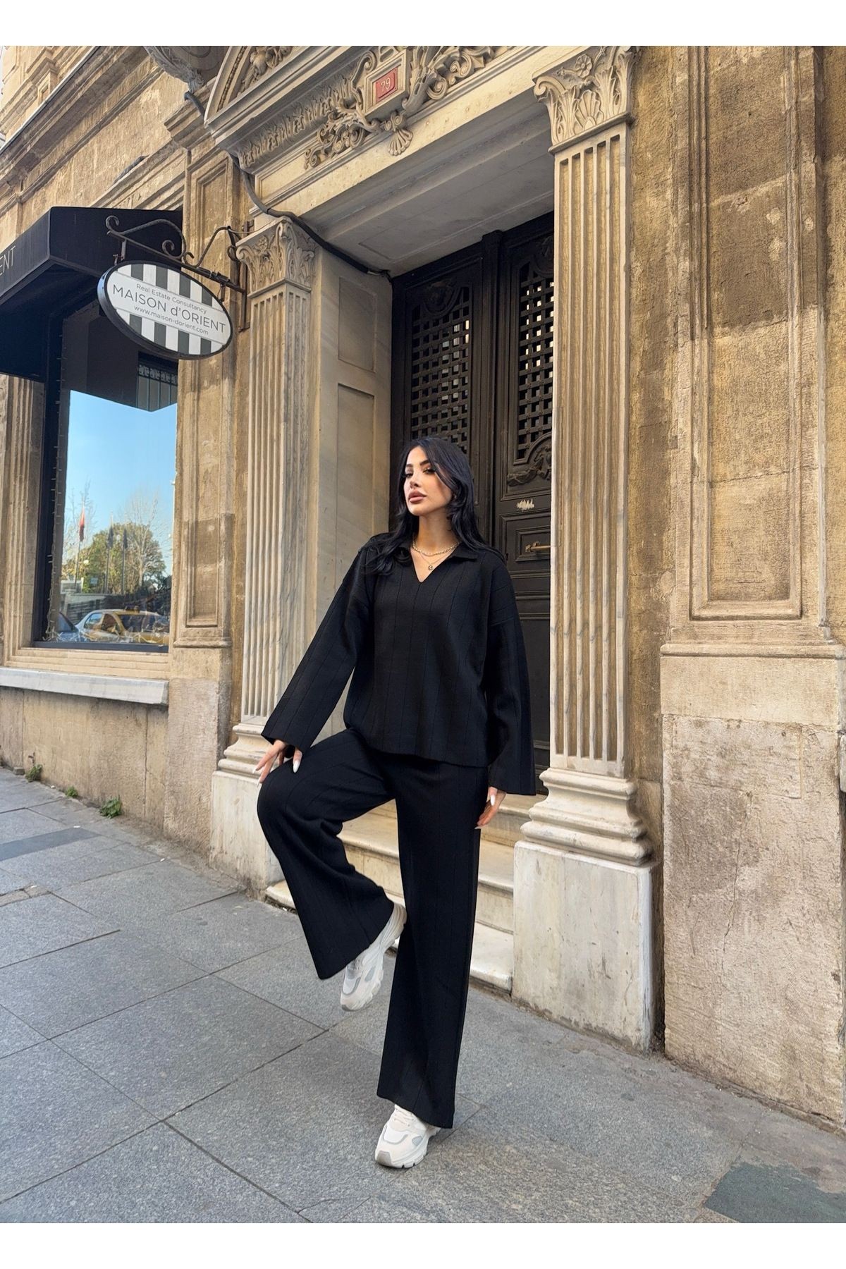 Polo Yaka Fitilli Alt-üst Triko Takım